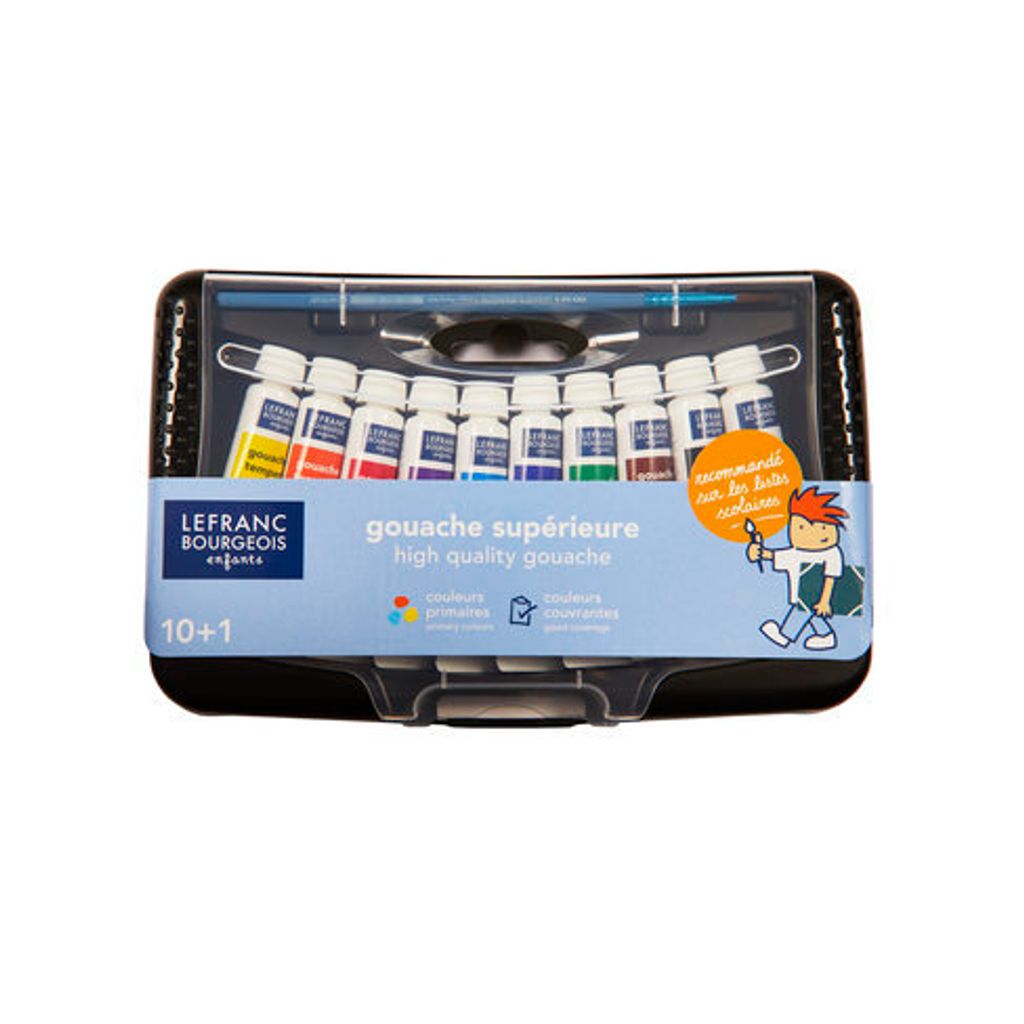 - Comes with 10 Gouache tubes and a brush .